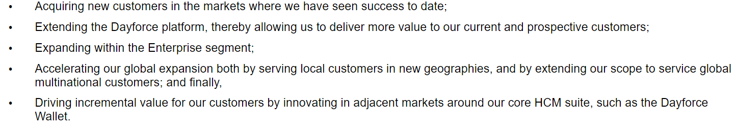 We sell our Cloud solutions through a direct sales force and a variety of third party channels, organized by customer size and geography. We market Dayforce to organizations with more than 100 employees. We market Powerpay to organizations with fewer than 100 employees in Canada. The majority of our revenue growth comes from new Cloud customers.