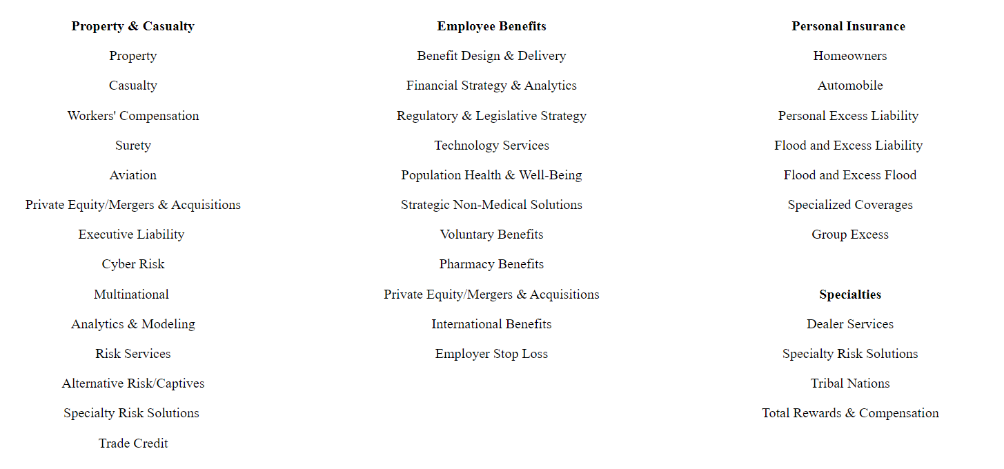 The Retail segment provides a broad range of insurance products and services to commercial, public and quasi-public, professional and individual insured customers, and non-insurance services and products through our automobile dealer services (“F&I”) businesses. Significant lines of coverage and capabilities are: