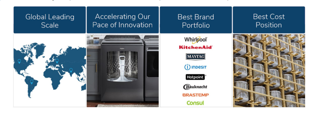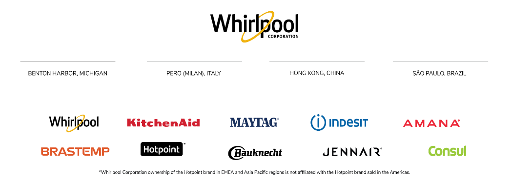 Whirlpool is trusted throughout the world as a brand that delivers innovative care daily. Our KitchenAid brand brings a combination of innovation and design that inspires and fuels the passion of chefs, bakers and kitchen enthusiasts worldwide. These two brands are the backbone of our strategy to offer differentiated products that provide exceptional performance and desirable features while remaining affordable to consumers.